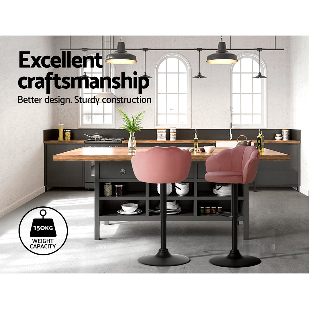 NNEDSZ Set of 2 Bar Stools Kitchen Stool Swivel Chair Gas Lift Velvet Chairs Pink Nessah