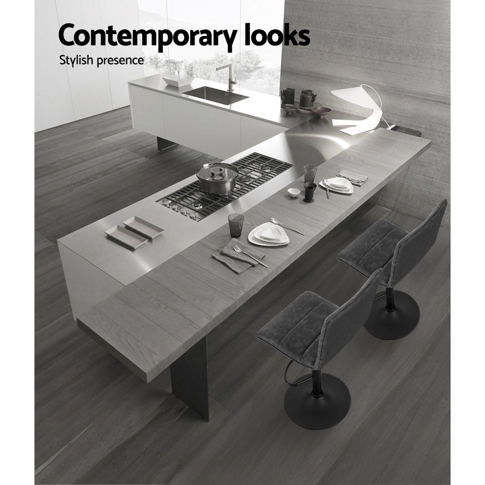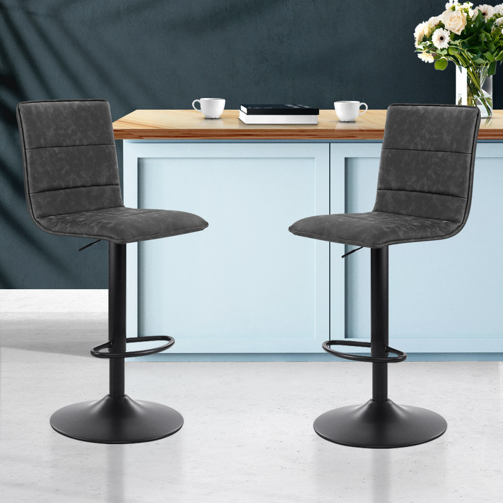 NNEDSZ Set of 2 Bar Stools PU Leather Smooth Line Style - Grey and Black