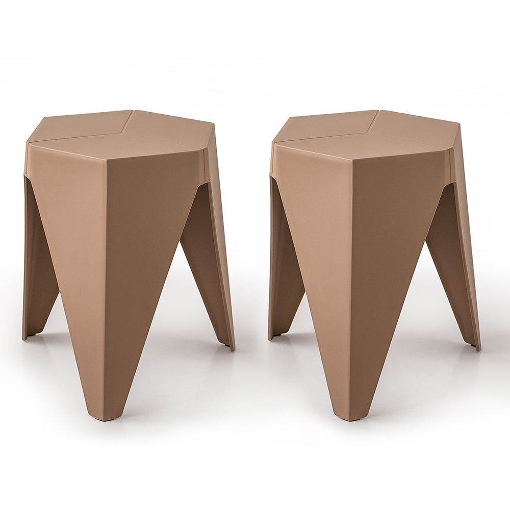 NNEDSZ Set of 2 Puzzle Stool Plastic Stacking Stools Chair Outdoor Indoor Brown