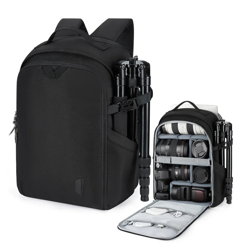Designed for photographers who value mobility and safety, this waterproof camera backpack combines smart organization with reliable protection. Its customizable compartments easily fit cameras, lenses, and accessories, while the dedicated laptop pocket keeps you connected wherever you go. The bag’s durable, weather-resistant material and included rain cover ensure your gear stays dry and secure in any environment — perfect for both professional shoots and outdoor adventures.