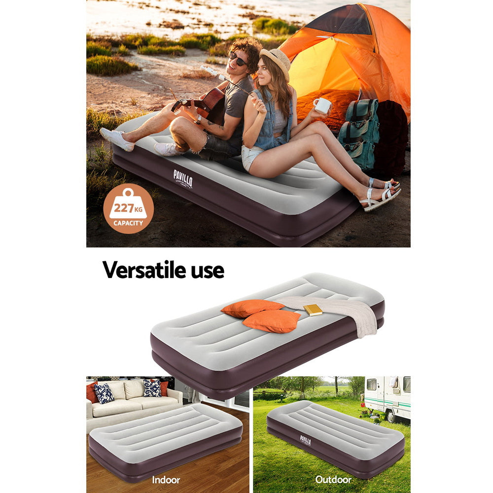 Featuring a comfortable flocked sleeping surface, the single size air bed provides a smooth and comfy sleep each and every night. Designed with a sturdy coil-beam construction, this quality air bed is suitable for both indoor and outdoor use. Inflates in just 230 seconds, You will have an instant bed ready to go whenever the situation calls for a spare mattress. Portable, easy to store and effortless to set up, this convenient air mattress provides the perfect balance of comfort, practicality and affordability.