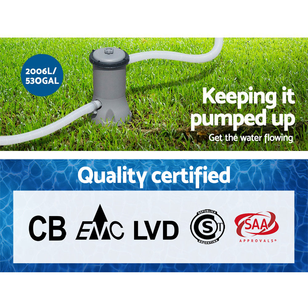 We’re sure you’ll be having great fun in the pool. And it’s important to keep the water clean too. Well, it’s good to know that the pool comes with a Flowclear filter pump with a high volume flow rate of 530gal per hour to ensure the water remains crystal clear for all your wet and wild antics.
