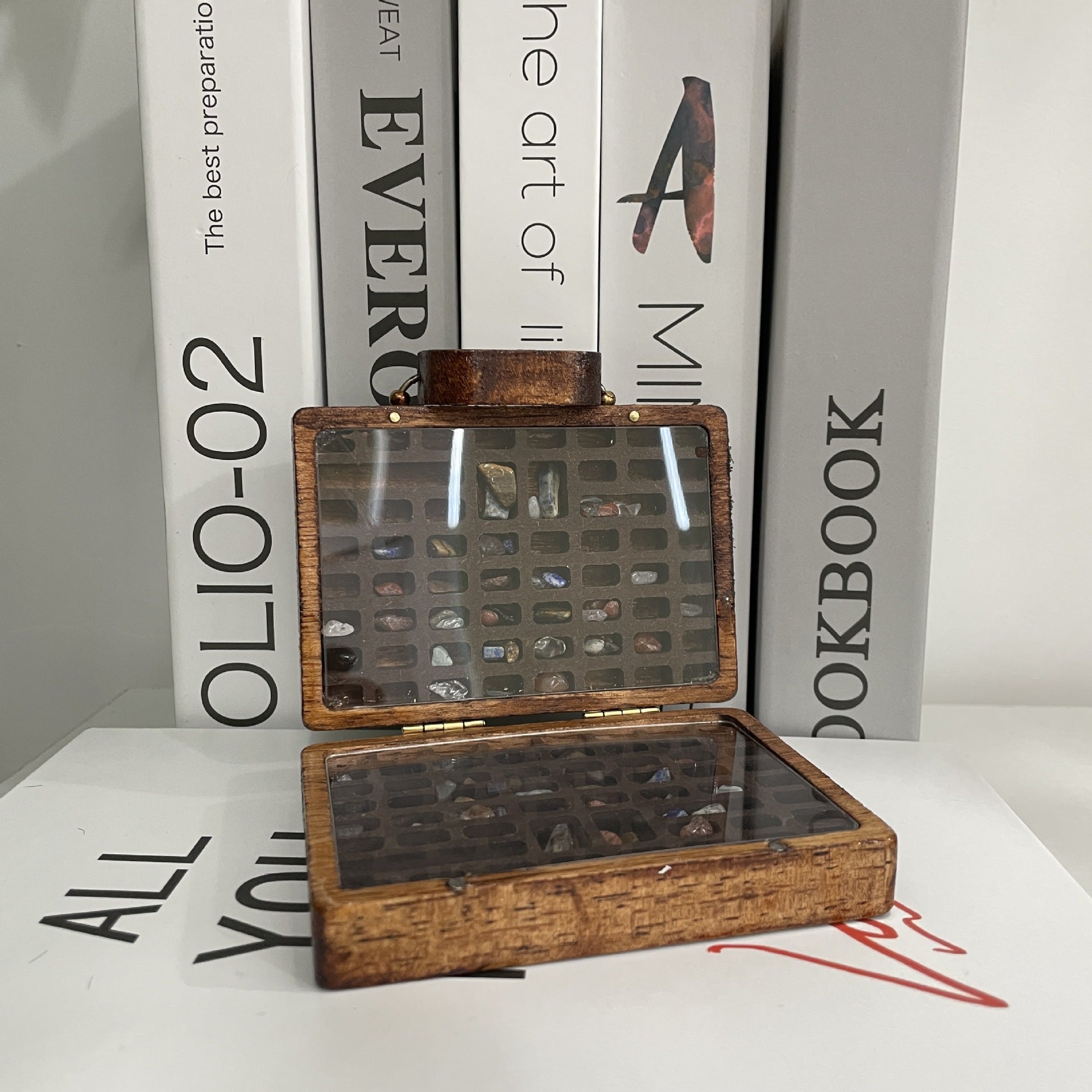 NNEDSZ Brown Vintage Wooden Display Box – Glass Lid Organizer for Rocks, Jewelry, and Collectibles