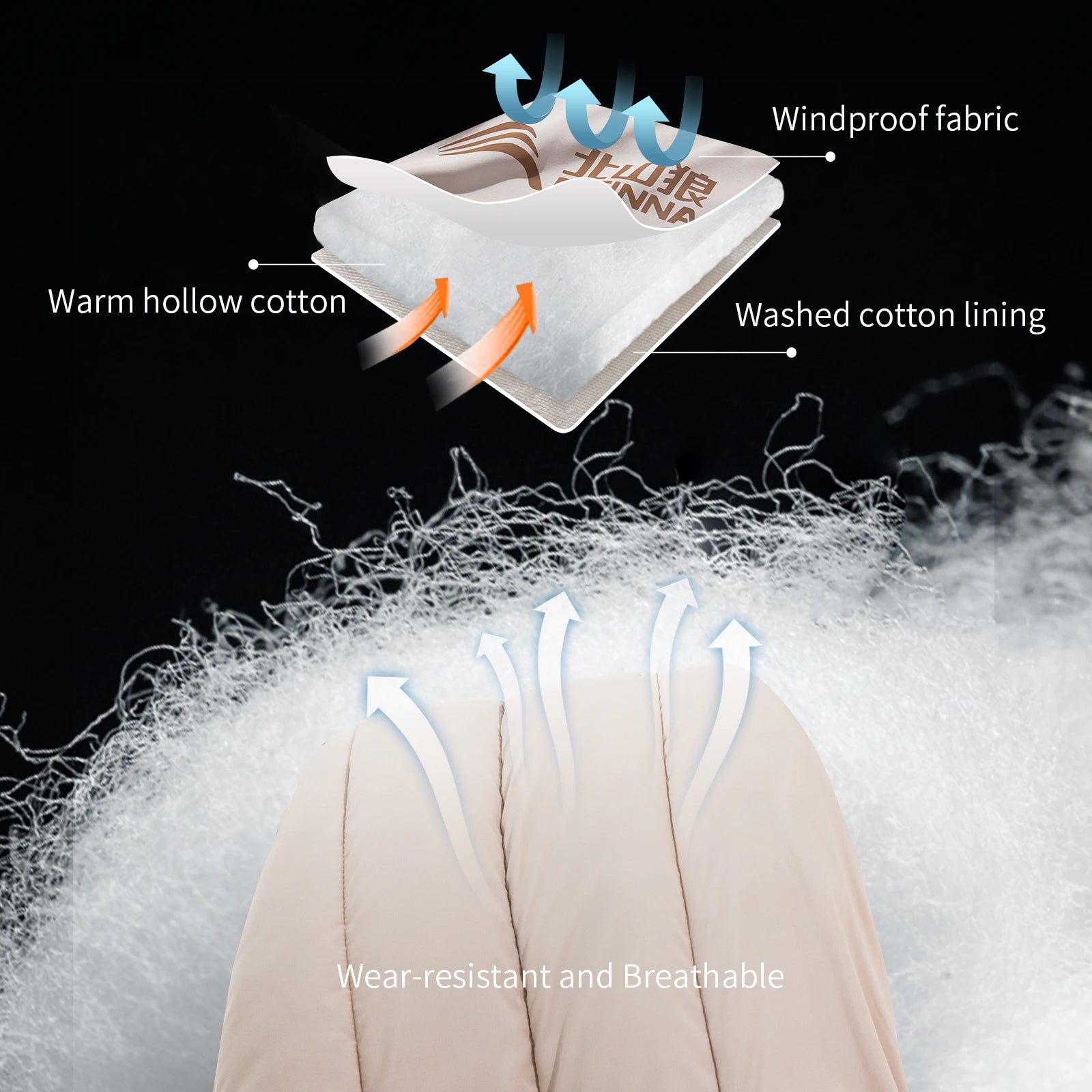 Soft & Breathable: Washed cotton lining and hollow cotton filling for comfort and insulation