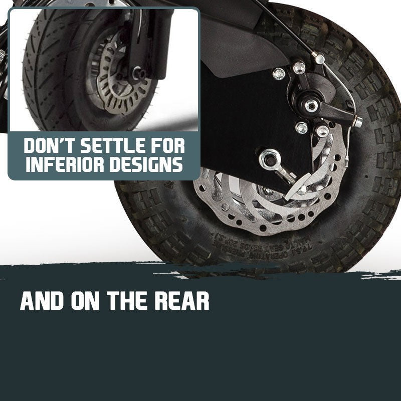 Of course, our boffins paid equal attention to the handling -a high-tensile yet lightweight steel frame houses tough polished steel shocks, massive disc brakes and oversized knobby 10-inch tyres. For those that like to tinker with their toys, youll love how easy it is to tweak the shocks and brakes to your riding style.