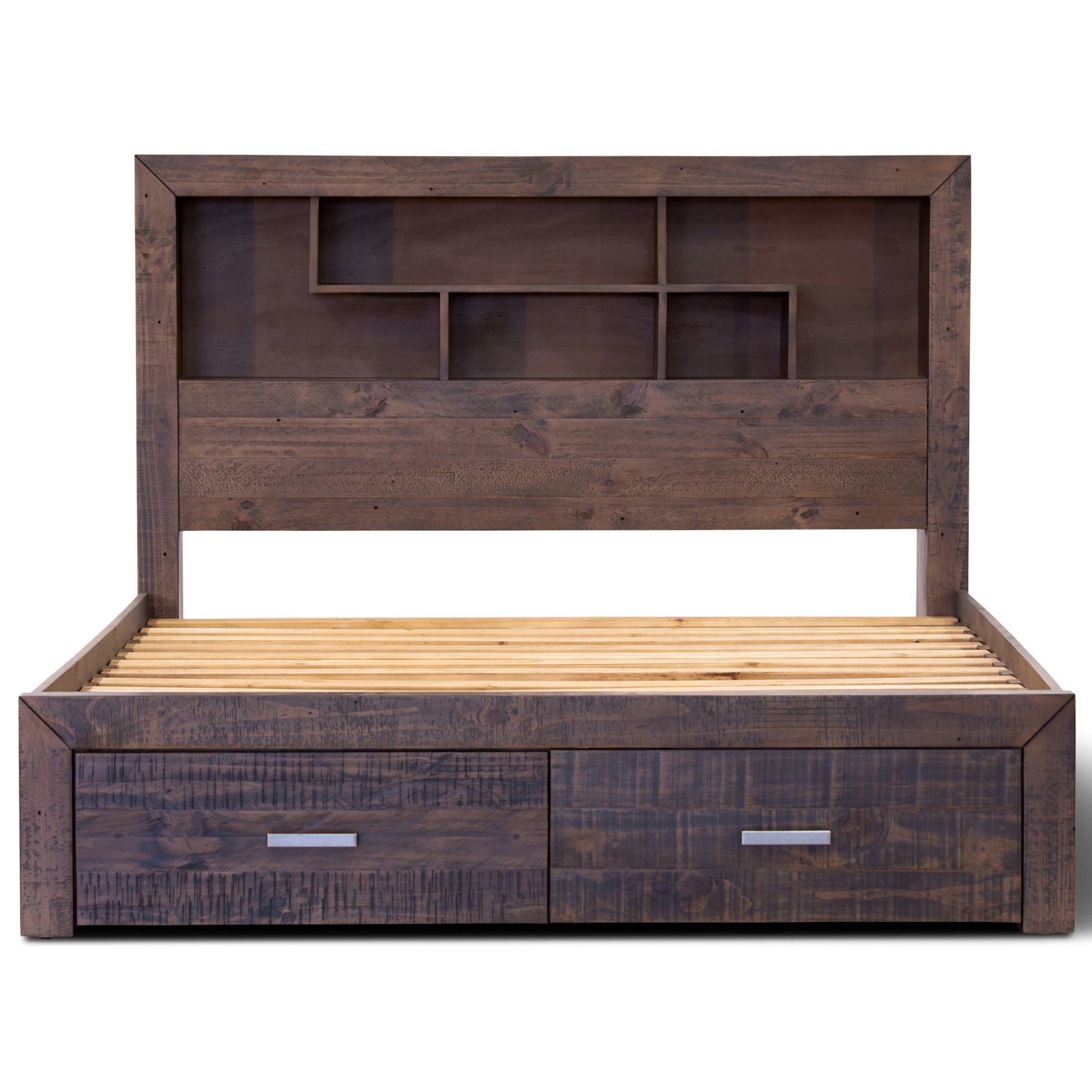 - With bookshelf style headboard