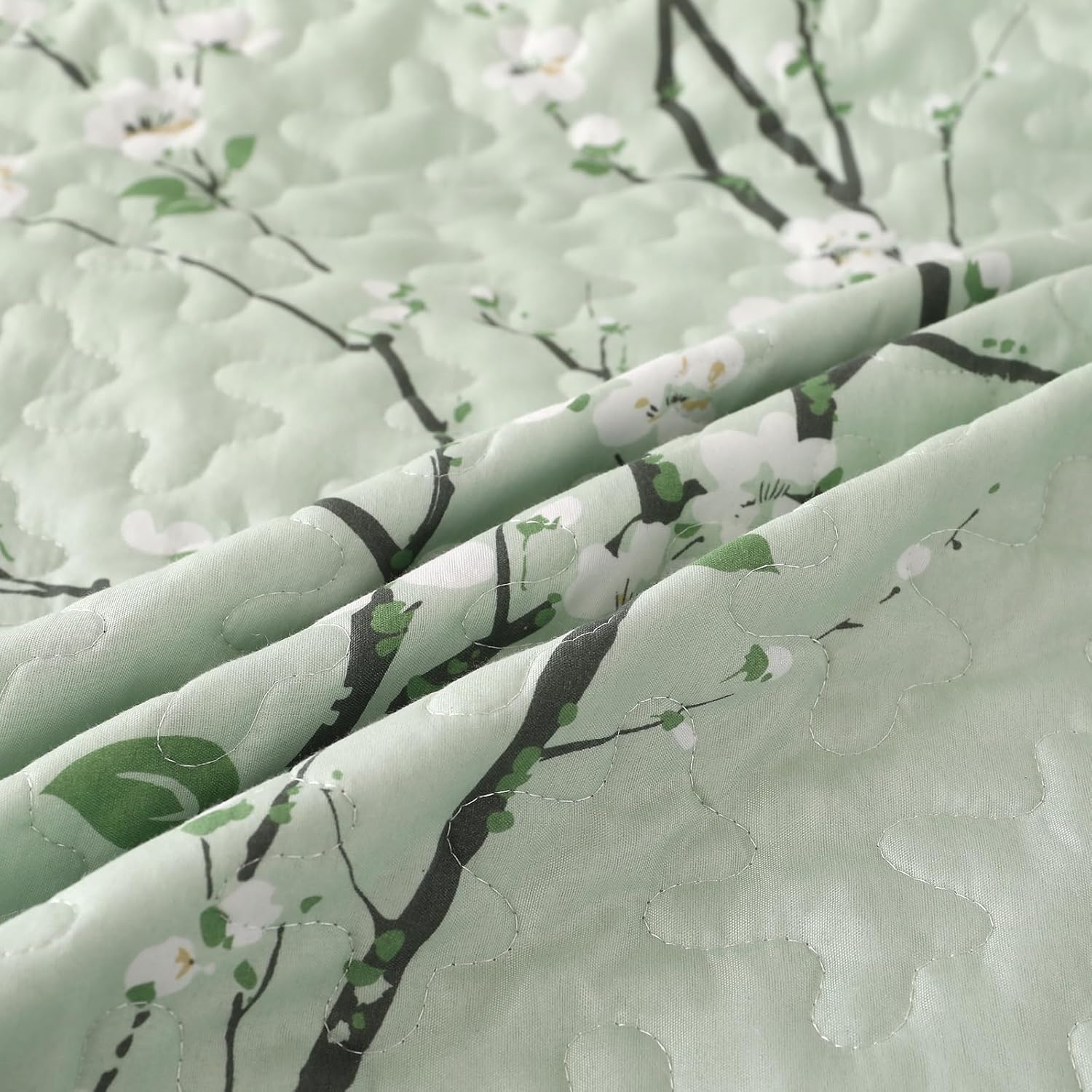 NNEDSZ Chic green Floral Quilted 3 Pc Bedspread & Pillow Cover Set
