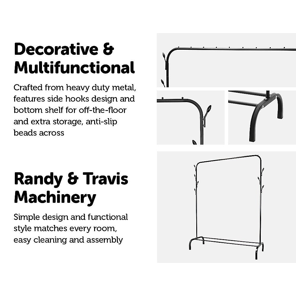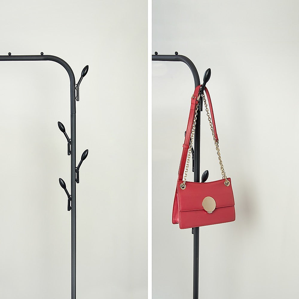 Whether you need a freestanding garment rack or want to add extra storage capacity to your walk-in wardrobe, this stunning garment rack by Randy & Travis Machinery is a great choice. With its minimalist profile and uber-modern design, it's so beautiful that you won't want to hide it in your wardrobe. Decorative hooks on each side hold hats, handbags, or umbrellas, while a bottom shelf stores boxes of out-of-season clothes, shoes, or other accessories. Sturdy enough to hold even the heaviest winter jackets and coats, it's a great option for cloakrooms at restaurants and bars or offices, too.