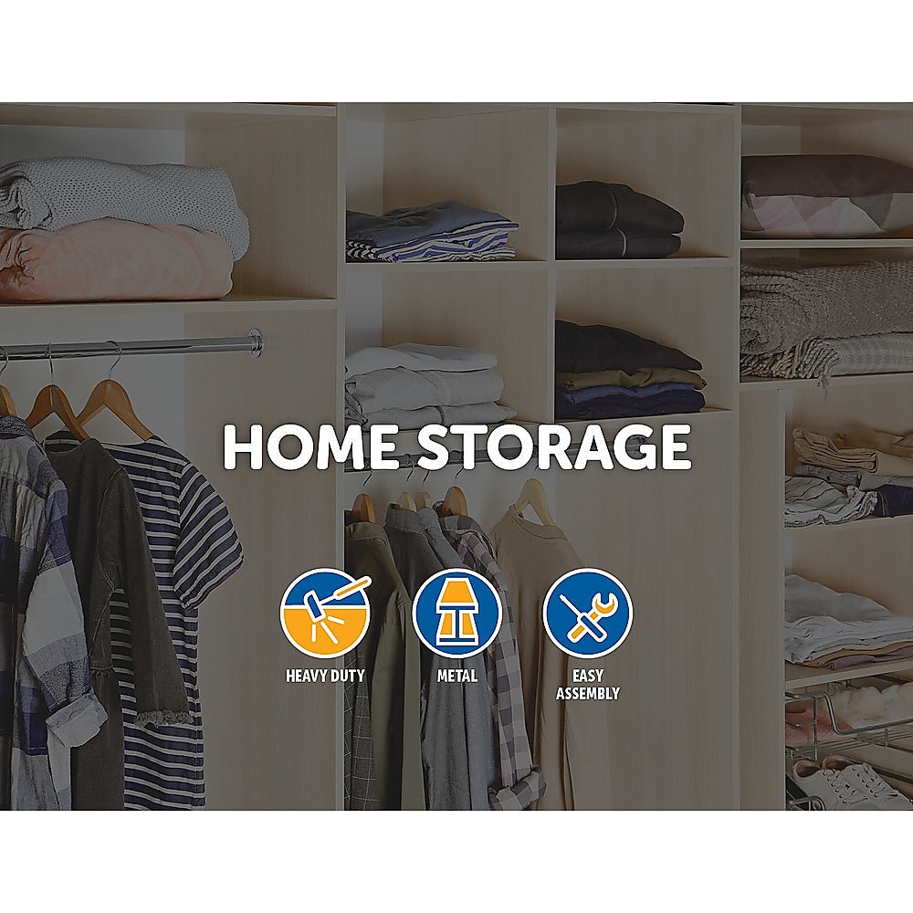 Crafted from heavy-duty metal, this garment rack is designed to last for years to come. Its neutral black colour will blend in well with almost any room's colour scheme. It's easy to install and comes with all the tools and instructions you need to set it up the day it arrives at your doorstep. To clean it, all you need to do is wipe it down with a dampened clean cloth, and it's good to go. Get an early start on your spring cleaning and organising. Order your garment rack and organise your wardrobe today!