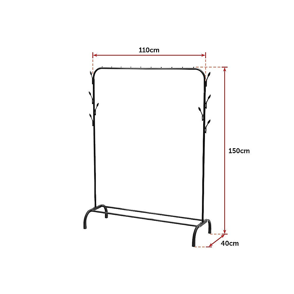1 x Closet Organizer Metal Garment Rack Portable Clothes Hanger Storage Shoes Rack Black