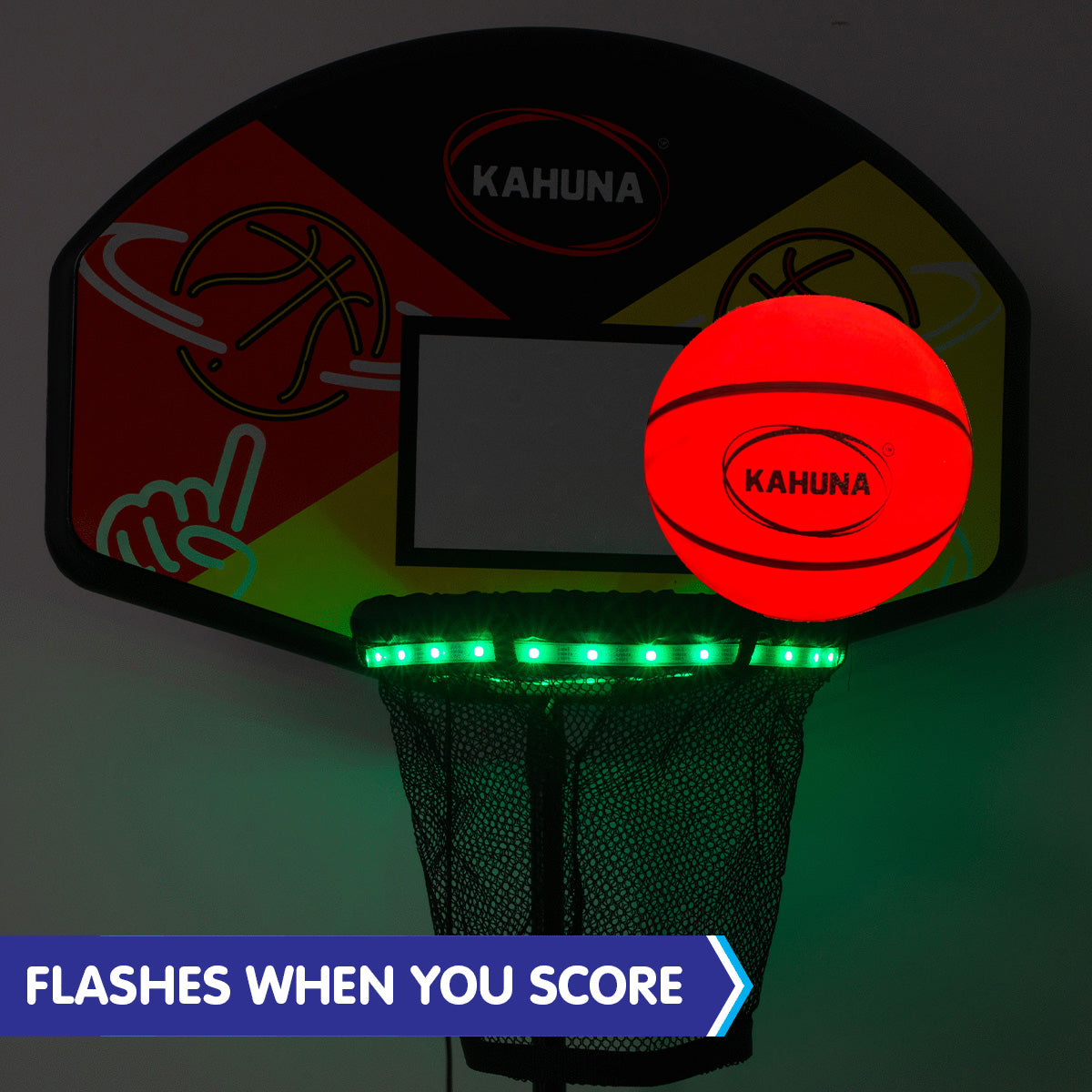 Turn your kids trampoline into a basketball arena with Kahunas LED basketball hoop set. The rim of this basketball hoop lights up every time you score, giving you and your kids instant feedback. Used with a bouncy trampoline, its the most exciting way to encourage future basketball champions!