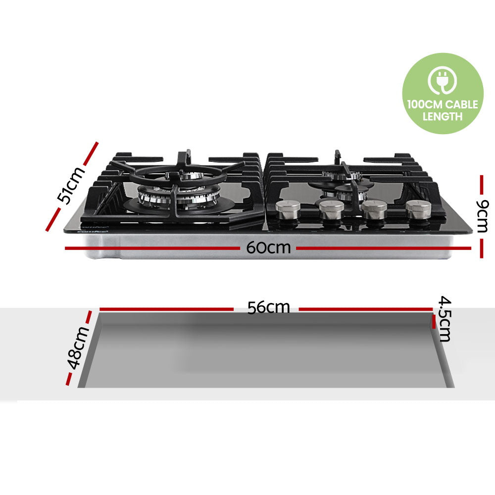 NNEDSZ 60cm Gas Cooktop 4 Burners Kitchen Gas Hob Trivets Stove Cook Top Black