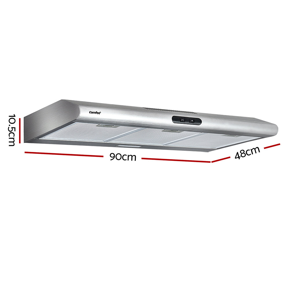 Thick smoke and steam from your cooking. Stifling odours all around. And the hood is not doing its work in clearing the mess. Not anymore with Comfee 900mm Range Hood. Featuring a powerful extraction rate of 300m³/hr from a high performance 100W rated motor, our stainless steel range hood will clear the air of smoke, steam, odours and vapours in no time at all. The non-stick and removable 5-layer aluminium grease filter also ensures all grease is efficiently captured. Setting all this up is a 2-speed fan that can be easily selected with the rocker button switches. Clear and bright LED light also provide vivid illumination of your cooking area as you would surely appreciate.