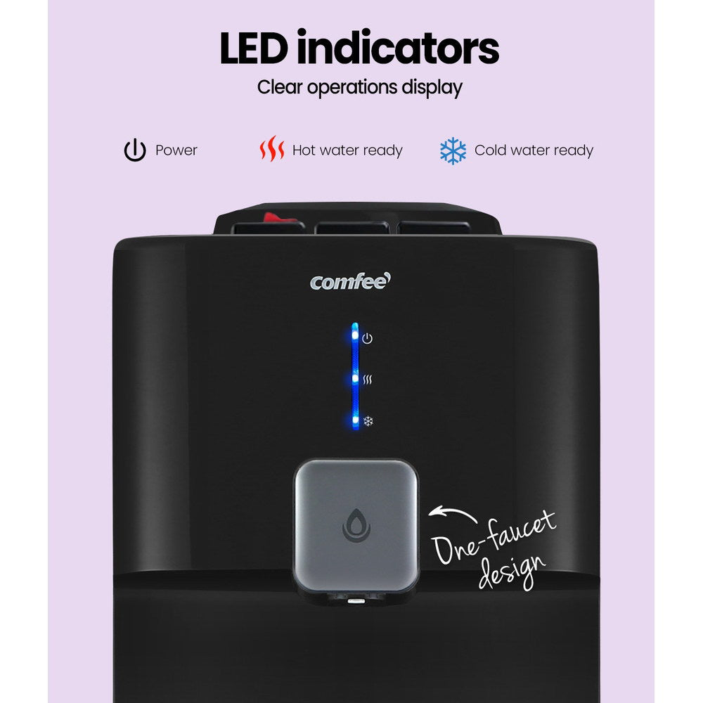 Have access to cleaner and purer water at all times with the Comfee Water Dispenser. Designed to work with most bottled water or water purifying bottles, the dispenser features a high-efficiency compressor that works quietly and reliably, and enables selective cooling and boiling for more energy savings. It comes with a detachable water guide plate that can cater to either water containers. The dispenser has LED indicators for easy operation and features the latest one-faucet design for hot and cold water options. Even better, the hot water has three water temperature options to suit your needs. A removable drip tray also allows for easy cleaning. For added safety, the dispenser has overheating protection and a child lock to prevent children from tampering with the hot water options. Not least, the water dispenser has a large storage cabinet to store any accessories or drinking essentials.