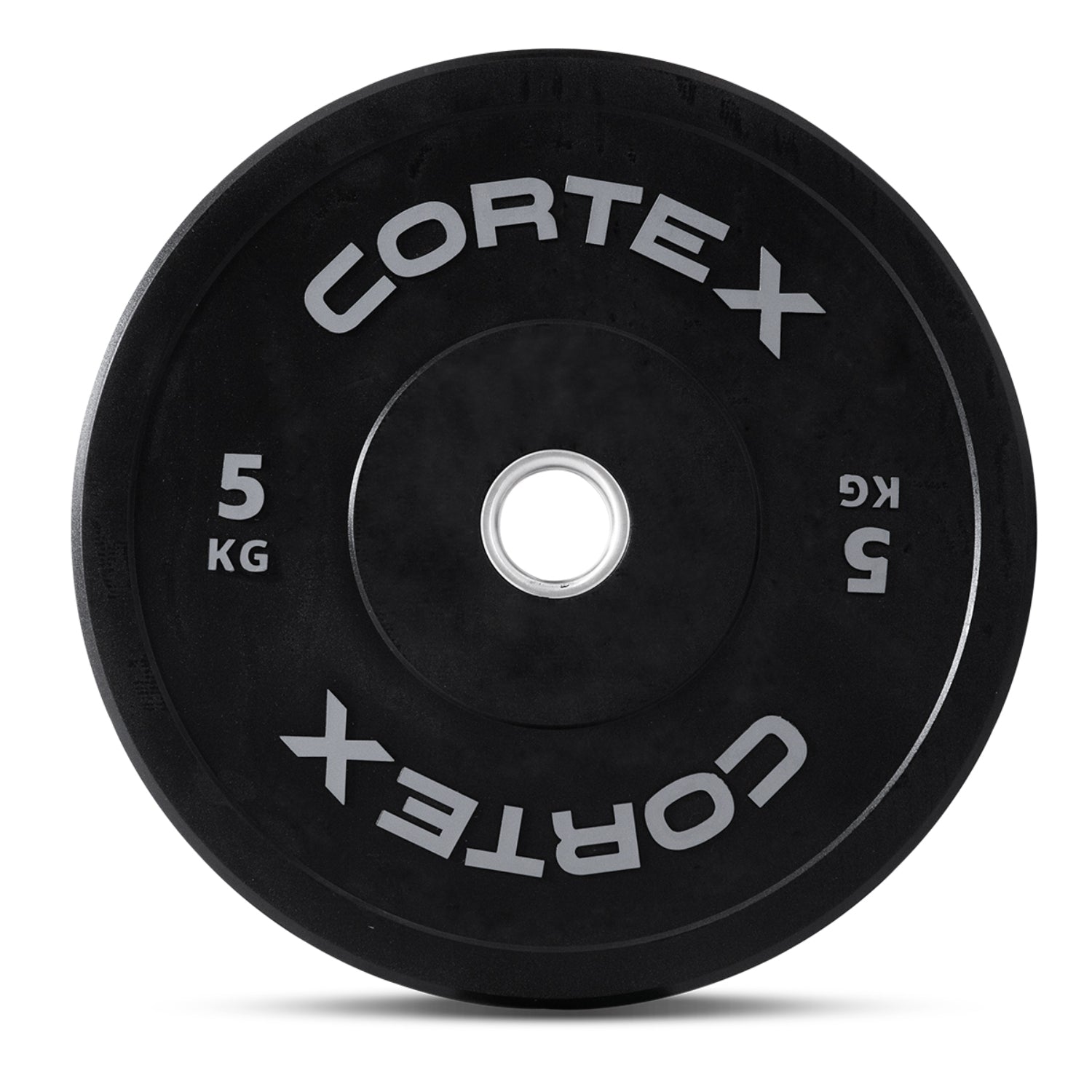 Our CORTEX 5kg Black Series V2 Rubber Olympic Bumper Plates are engineered for serious functional fitness use, Olympic lifting and Cross Fit training. The heavy-duty rubber surface is scratch resistant and designed to withstand high impact lifts. The grooved edges allow for better handling with the steel core offering seamless loading onto the barbell.