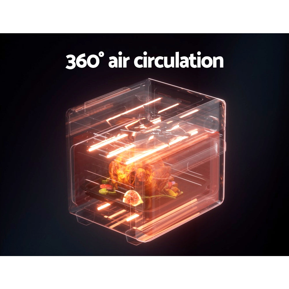 Enjoy your favourite fried foods without guilt thanks to the Devanti 15L Air Fryer Oven. With its smooth and stunning sleek exterior, the Devanti Air Fryer turns ordinary food into extraordinary dishes thanks to its exceptional cooking abilities. Five stainless steel heating elements plus 360-degree heat circulation thanks to the powerful fans ensure your food is cooked thoroughly and evenly. The 15L capacity is suitable for a full set of meals from sides to mains. 12 cooking presets help you cook your ideal meal to perfection every time. Better still, all this wonderful cooking is done without a drop of oil and is as delicious and succulent as your favourite fried treats. Choose the time, temperature and cooking preset with the easy-to-use LCD touch control panel. The tempered glass viewing window and interior light make it easy to check your cooking progress. It also features an automatic shut-off switch, a cool touch handle, a heat shield vent, and non-slip feet for safety. Most importantly, each component is easy to clean, so you can get dinner sorted and cleaned in no time. Comes with an additional wire basket, wire rack, non-stick cooking pan and baking tray. Get yours today and see the benefits of fat-free cooking!