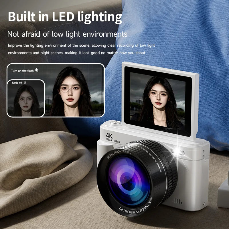 The 4K 64MP Retro Digital Camera blends classic aesthetics with cutting-edge performance, making it a perfect choice for both beginners and content creators. With a 64MP sensor, 18x digital zoom, and 4K Ultra HD video, this compact camera captures every detail in stunning clarity and color. Its 2.8-inch IPS flip screen makes framing and reviewing shots easy, whether you’re shooting portraits, landscapes, or vlogs.