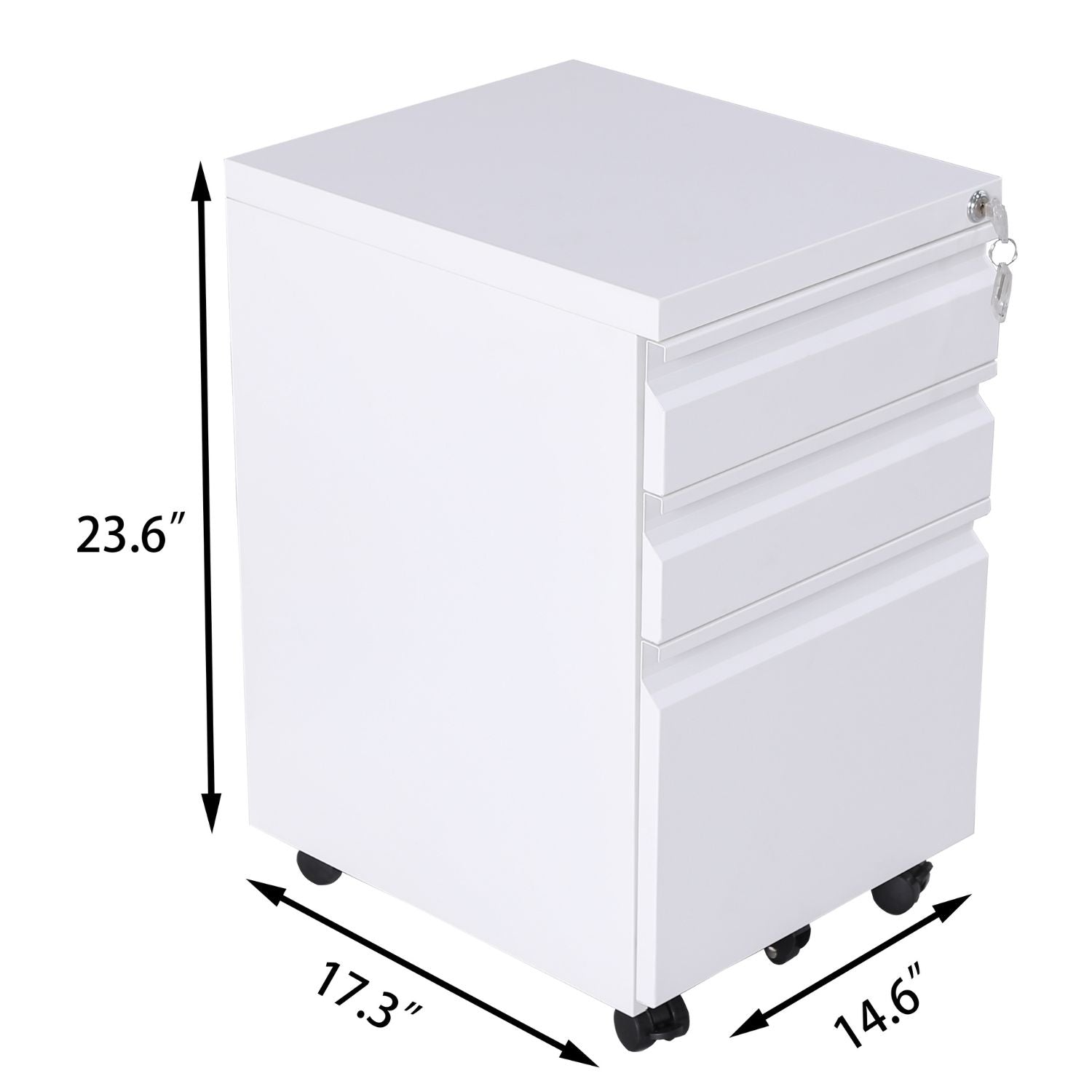 NNEDSZ 3 Drawer Mobile File Cabinet with Lock (White)