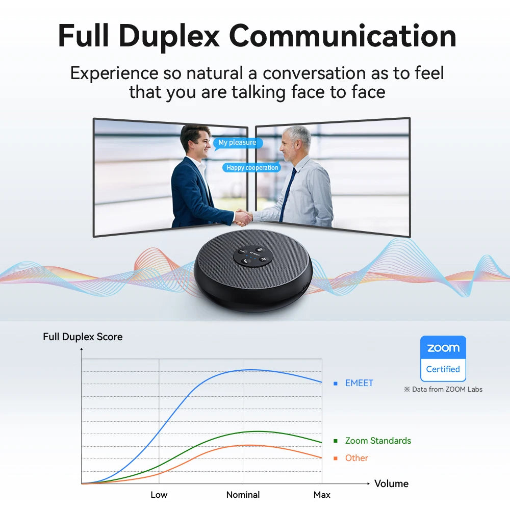 This USB wired conference speakerphone is designed to deliver clear, natural voice communication for online meetings, conference calls, and remote collaboration. Equipped with updated audio algorithms, it supports smooth two-way interaction, allowing participants to speak and be heard at the same time without distortion or delay.