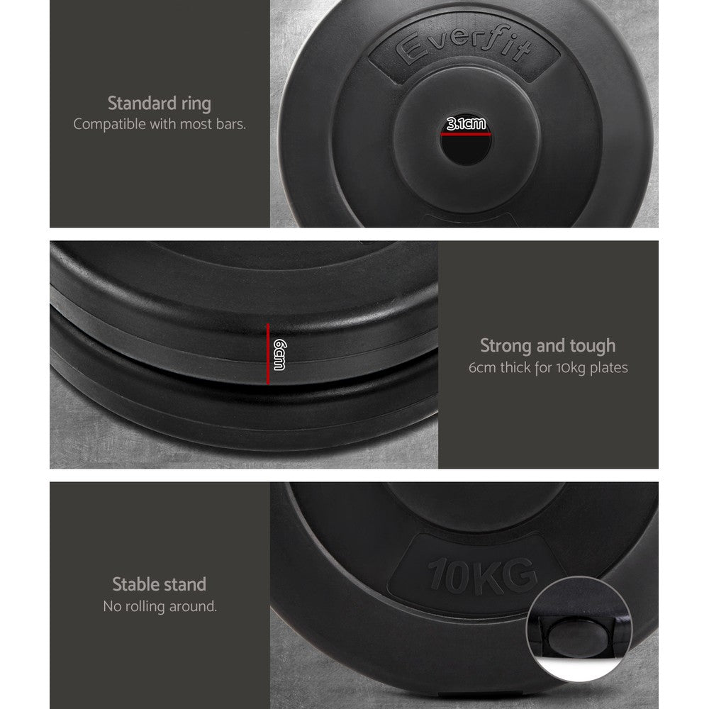 With its high quality construction and finish, this Everfit Home Gym Barbell Set will allow you strengthen and tone your muscles at home or anywhere else easily. These 20kg weight plates are filled with cast cement and covered with robust, floor-friendly plastic that allows you to work out without any annoying clanging sounds of the weights. Easily add and remove plates to ensure an appropriate workout for the muscles you are working. Plus, with a foam-wrapped barbell bar, it brings more comfort to your workouts. Not least, its detachable design enables it to double up as a dumbbell set and for easy storage.