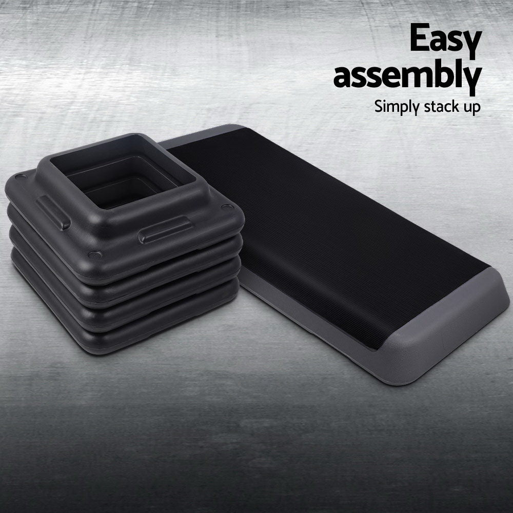 Have a professional workout at home with this commercial gym grade aerobic step. Just like the ones at your local gym, it features advanced anti-slip surface design and a wide stepping platform. You can even adjust the height to the level that you feel is most comfortable for you to train at. It's excellent for improving cardiovascular fitness, and can also train your body coordination, burn fat and tone up your hips and thighs at the same time. No assembly is required for this aerobic step, simply stack it up and you're ready to train! Now that you can have a professional workout even when you're at home, you no need to organise time to go to the local gym, just train whenever you like! Train and save, buy an aerobic step today.