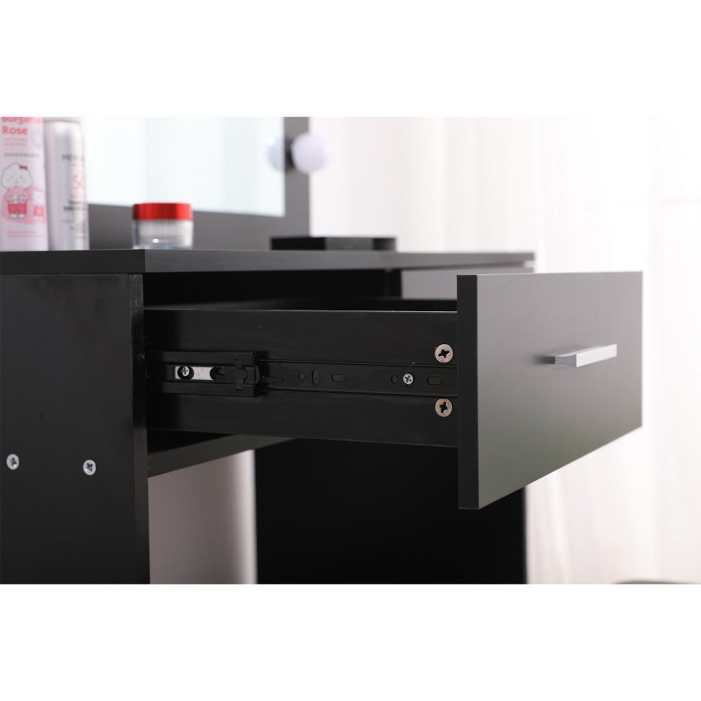 NNEDSZ Fidel Vanity Set with Cushioned Stool and Lighted Mirror- Black