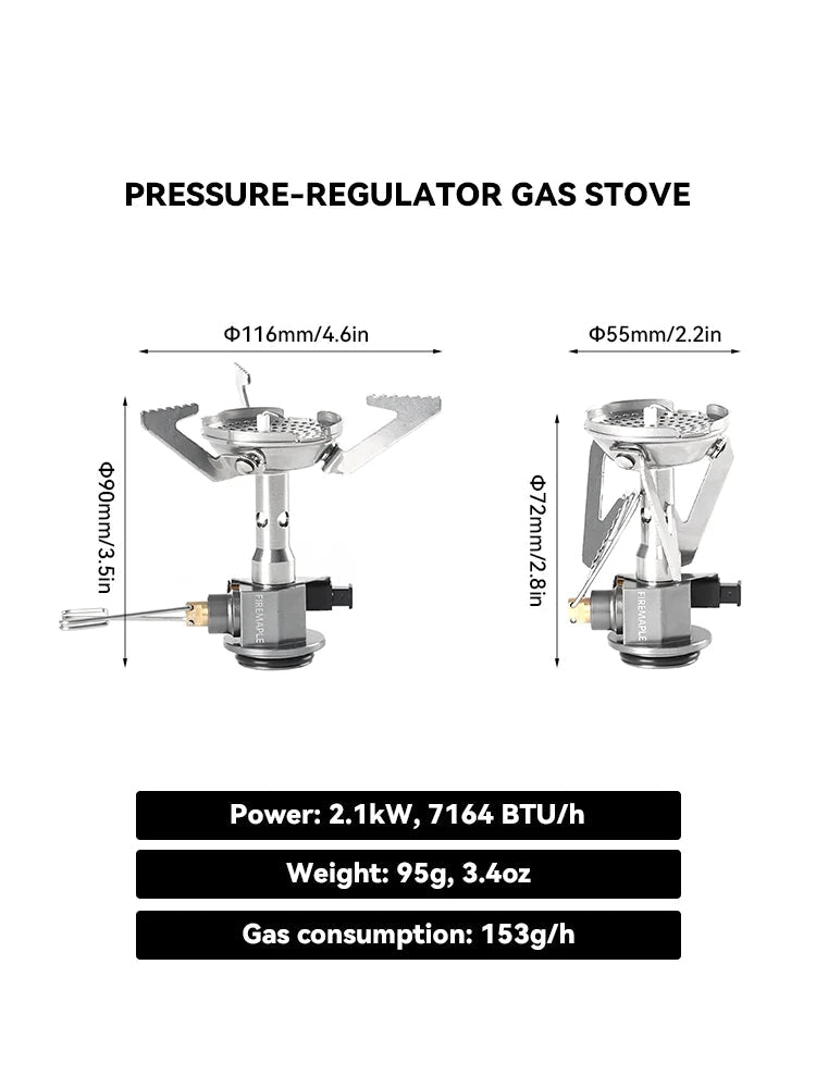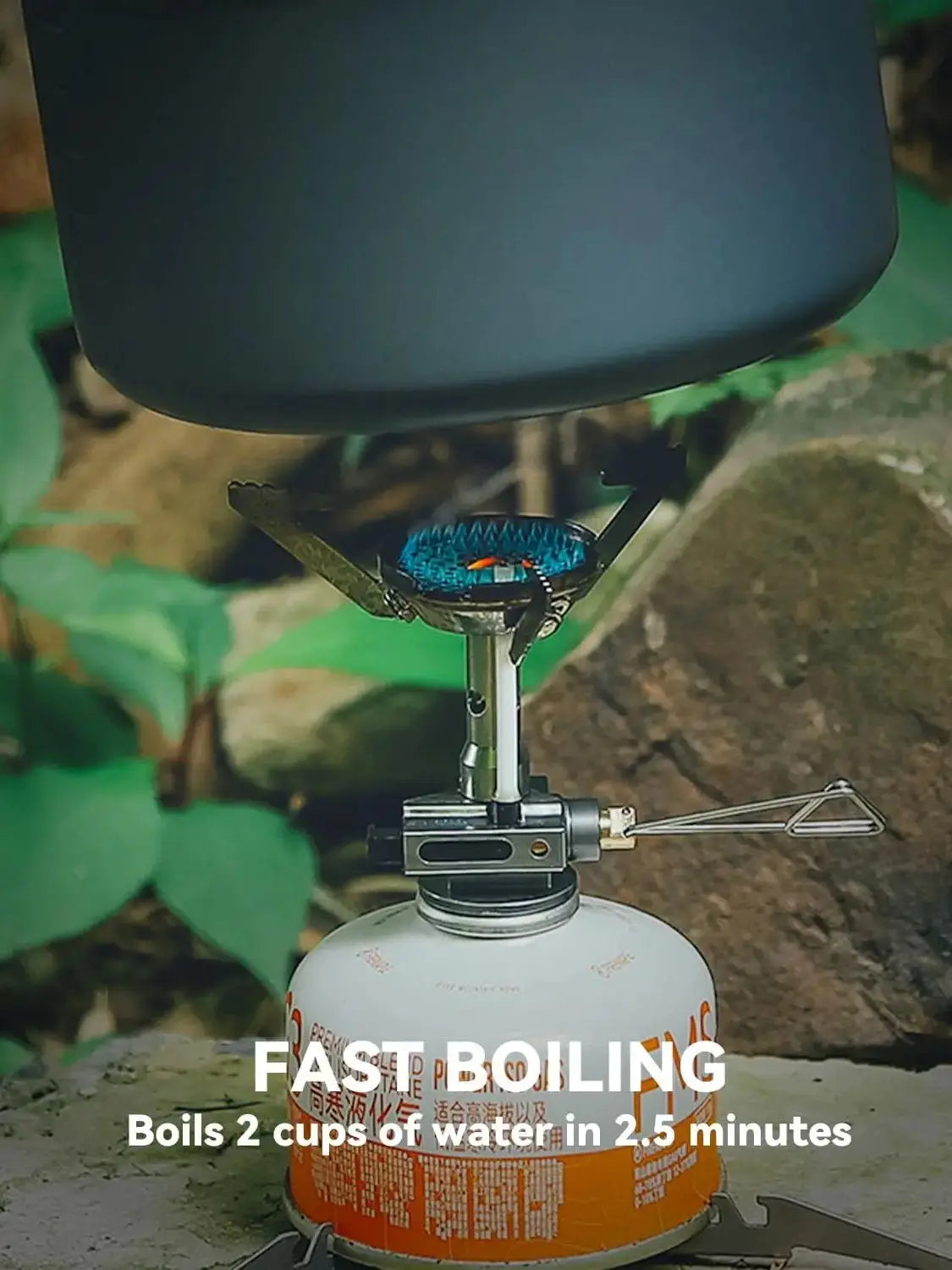 The Ultralight Pressure-Regulator Camping Stove is engineered for outdoor adventurers who demand reliability in all conditions. Its micro regulator valve delivers consistent burner output, ensuring steady performance even in extreme weather. With a powerful 2.1 kW flame and efficient fuel usage, it’s perfect for quick cooking without wasting gas.
