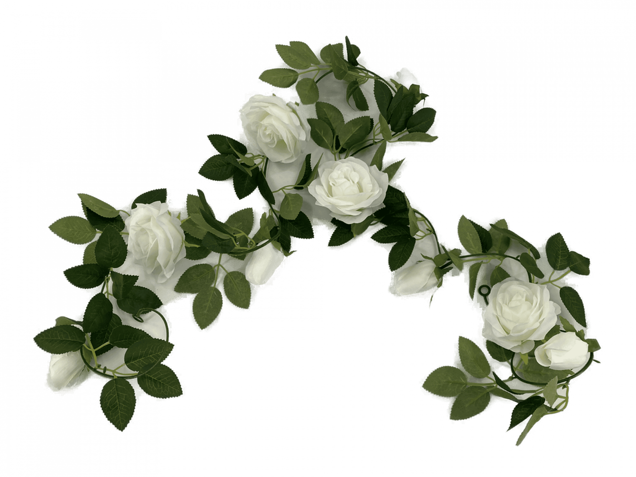Fresh blooms are always a welcome addition to any wedding day, but sometimes it can be tricky to find the right flowers at the right price. If youre looking for ways to add rustic charm to your special day, this faux rose garland is just the thing! A beautifully dainty and crisp white rose garland that is easy to use can be wrapped around banisters or laid across tables.