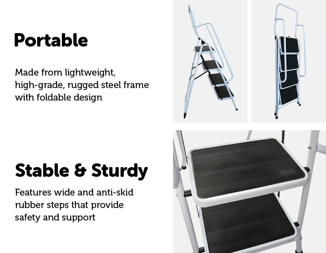 - 1 x Foldable Non Slip 4 Step Steel Ladder