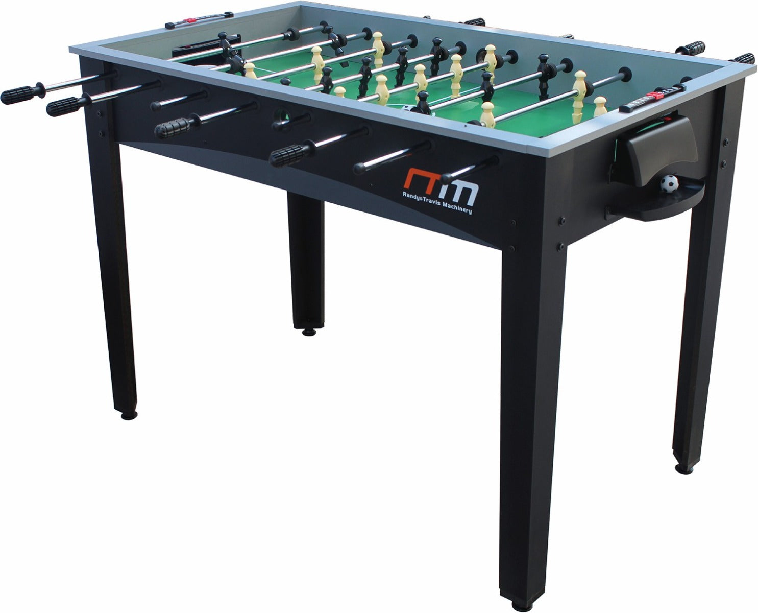 If foosball is your thing, this competition-sized foosball table by Randy & Travis Machinery belongs in your home. Made from sturdy MDF with solid steel rods finished in sparkling chrome, this table is built to last, even under everyday use. Slide bearings provide smooth rotation, while ball serve cups on each side make it easy to get the game rolling. It's suitable for the whole family and makes the perfect addition to your rumpus room or a great gift for your foosball-loving kids or teens.