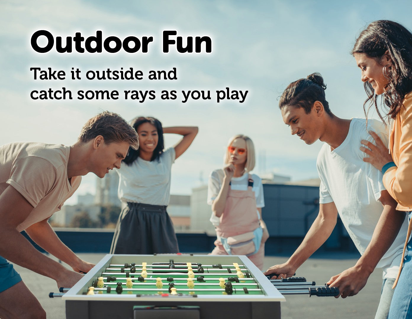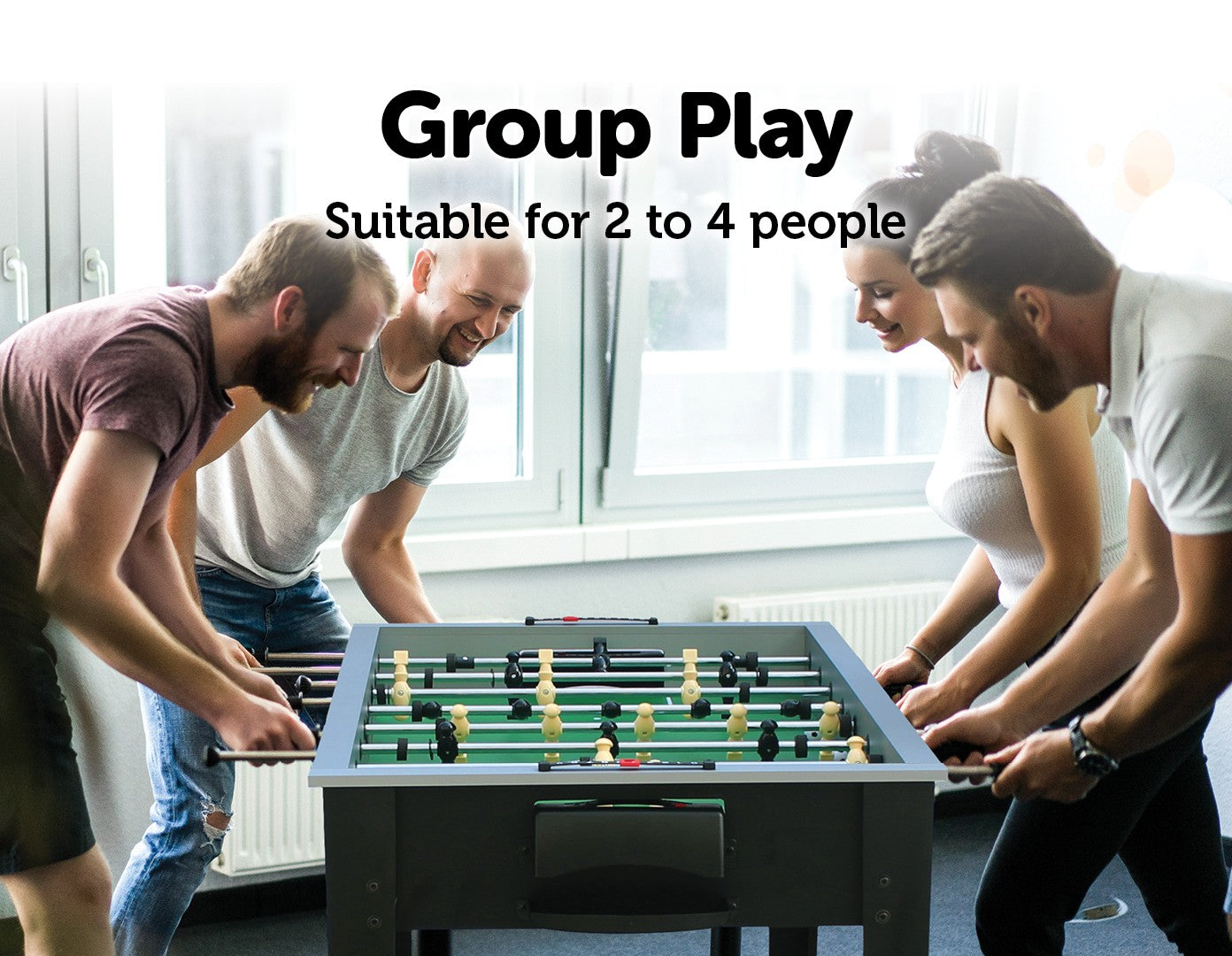 Its small footprint minimises the space it takes up while maximising your fun. Only 43.5 inches long, it can even fit into a child or teen's bedroom. Beautiful graphics mimic the look of a real football pitch, and anti-slip grips on the rod bars give players perfect control. Manual scorers keep track of each team or player's score. It's easy to set up and comes with everything you need to start playing as soon as you set it up. On sunny days, you can even take it outside to catch some rays as you play your favourite table game. This foosball table makes a wonderful holiday or birthday gift for your kids, your partner, or the entire family. Get yours today!