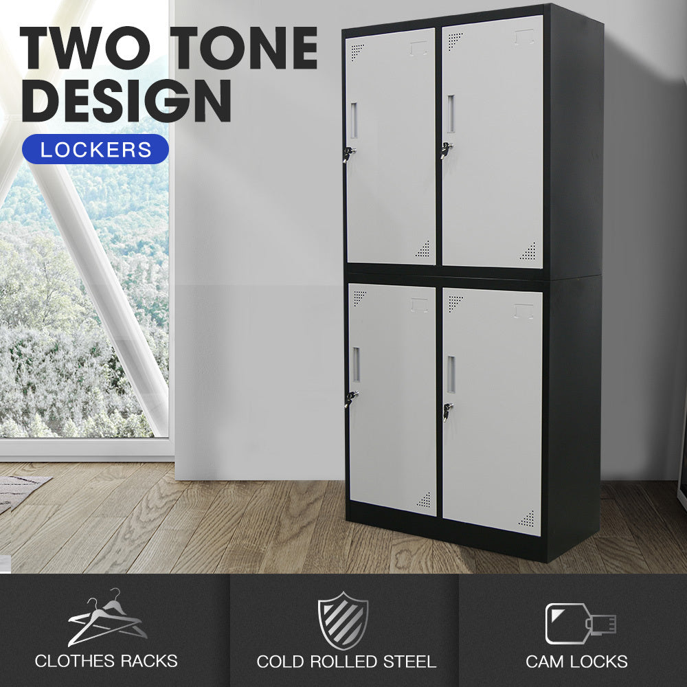 NNEDSZ FORTIA 4 Door Metal Storage Cabinet Lockers for Gym Office - Black and Grey