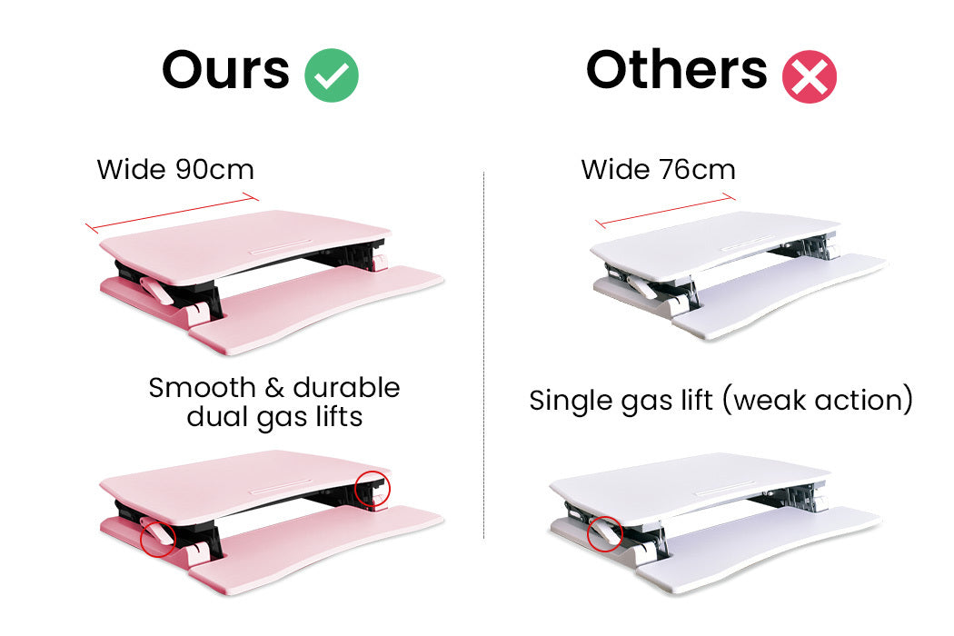 NNEDSZ Fortia Desk Riser 90cm Wide Adjustable Sit to Stand for Dual Monitor, Keyboard, Laptop, Pink