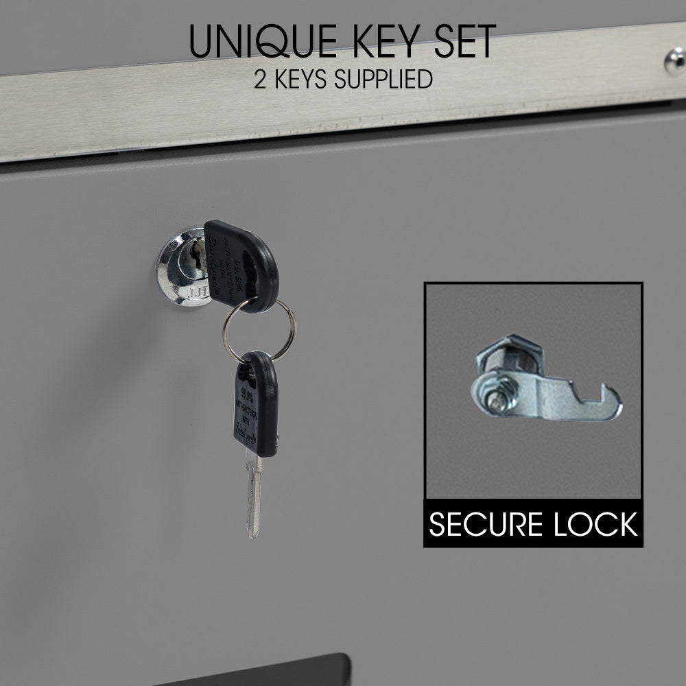 Its simple styling will complement any architectural style and look great on the wall of your home. Security is paramount with a secure L-shaped theft-proof lid design that prevents unwanted access to the storage chamber. Equipped with two unique keys, this parcel box guarantees exclusive access.