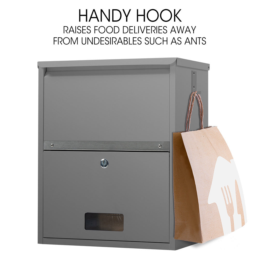 The thoughtful design includes a handy side hook to raise food deliveries away from undesirables such as ants. This wall mounted mailbox can accept parcels of up to 30 x 20 x 17cm, providing convenience without compromising security. This Fortia Post Box is shipped fully assembled and with pre-drilled holes and anchor bolts for need for a hassle-free installation.