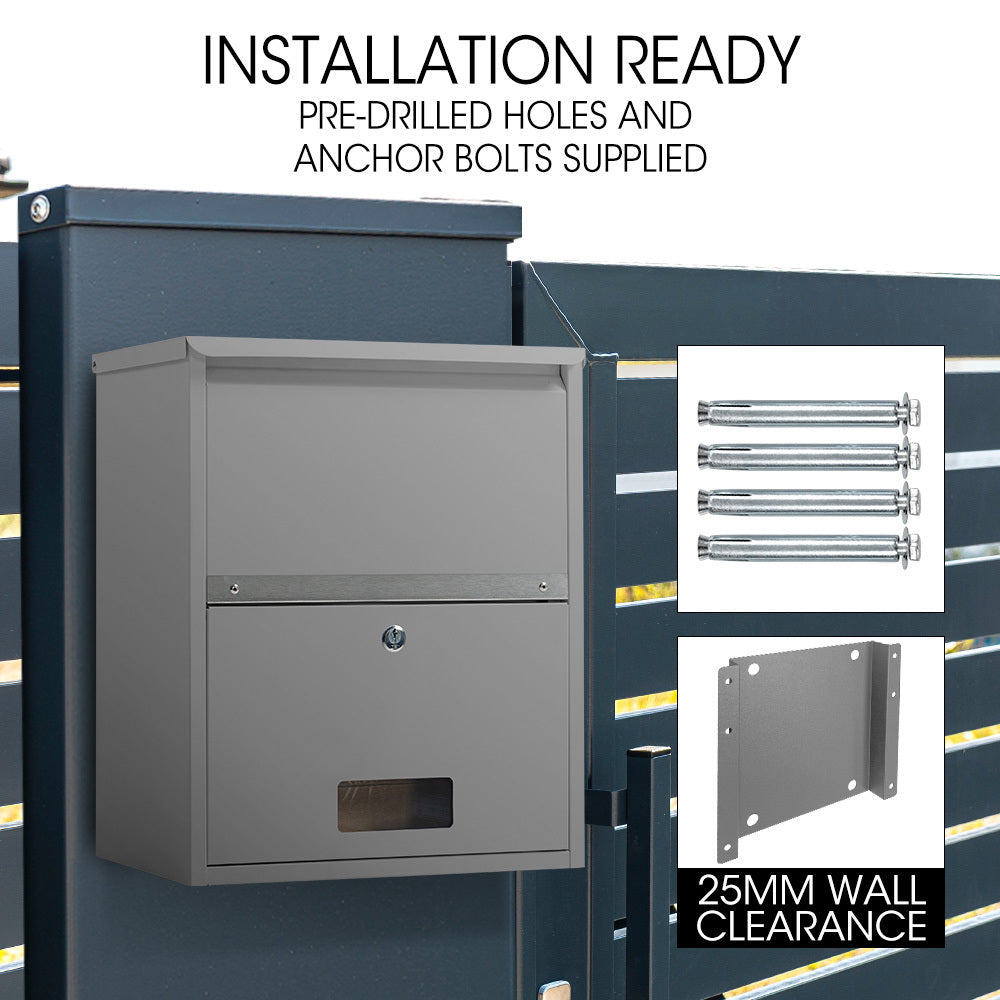 NNEDSZ FORTIA Wall Mounted Parcel Post Box Letterbox, Woodland Grey