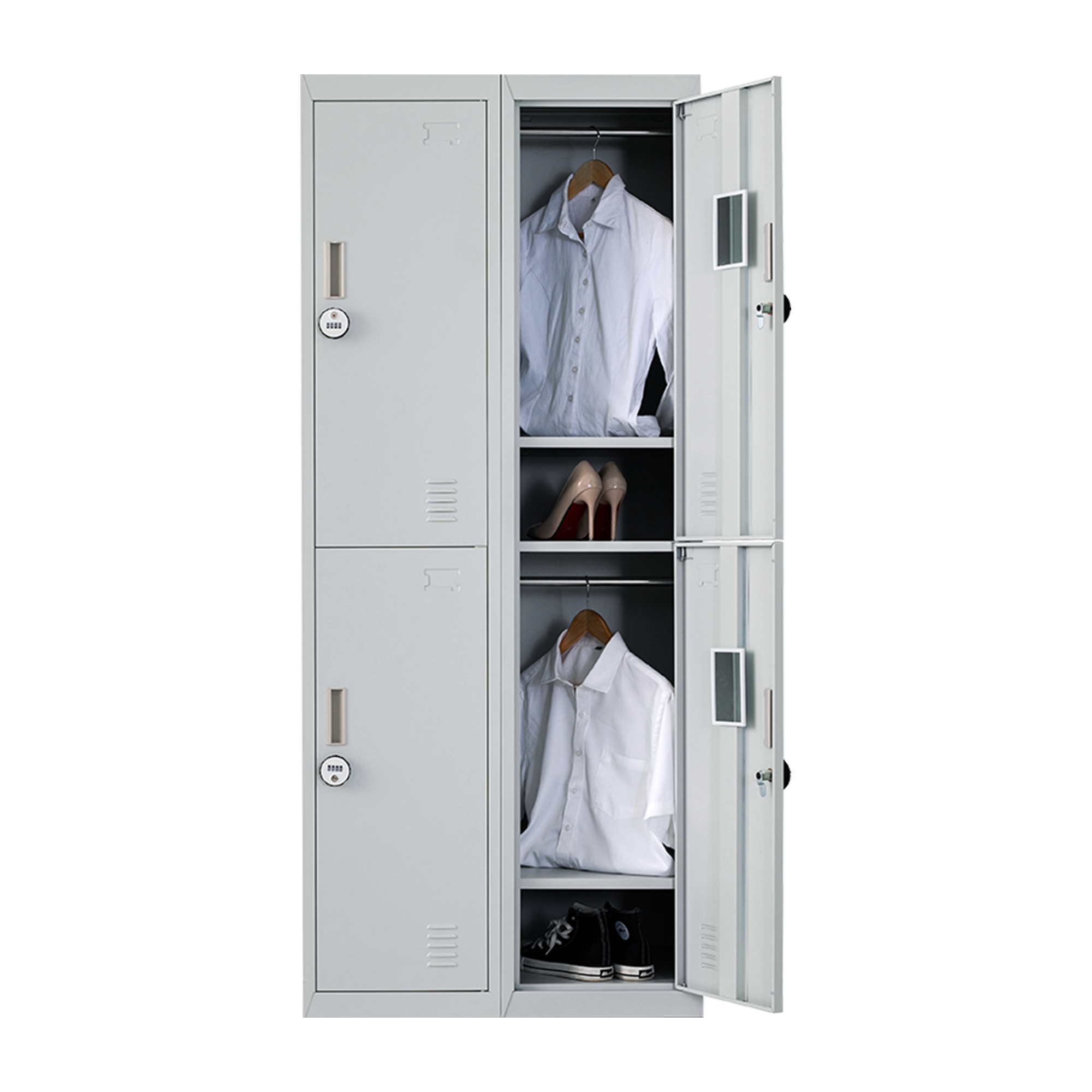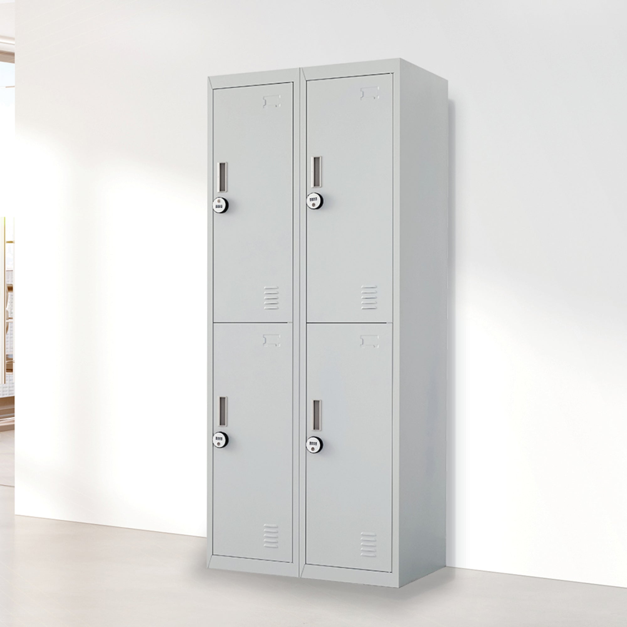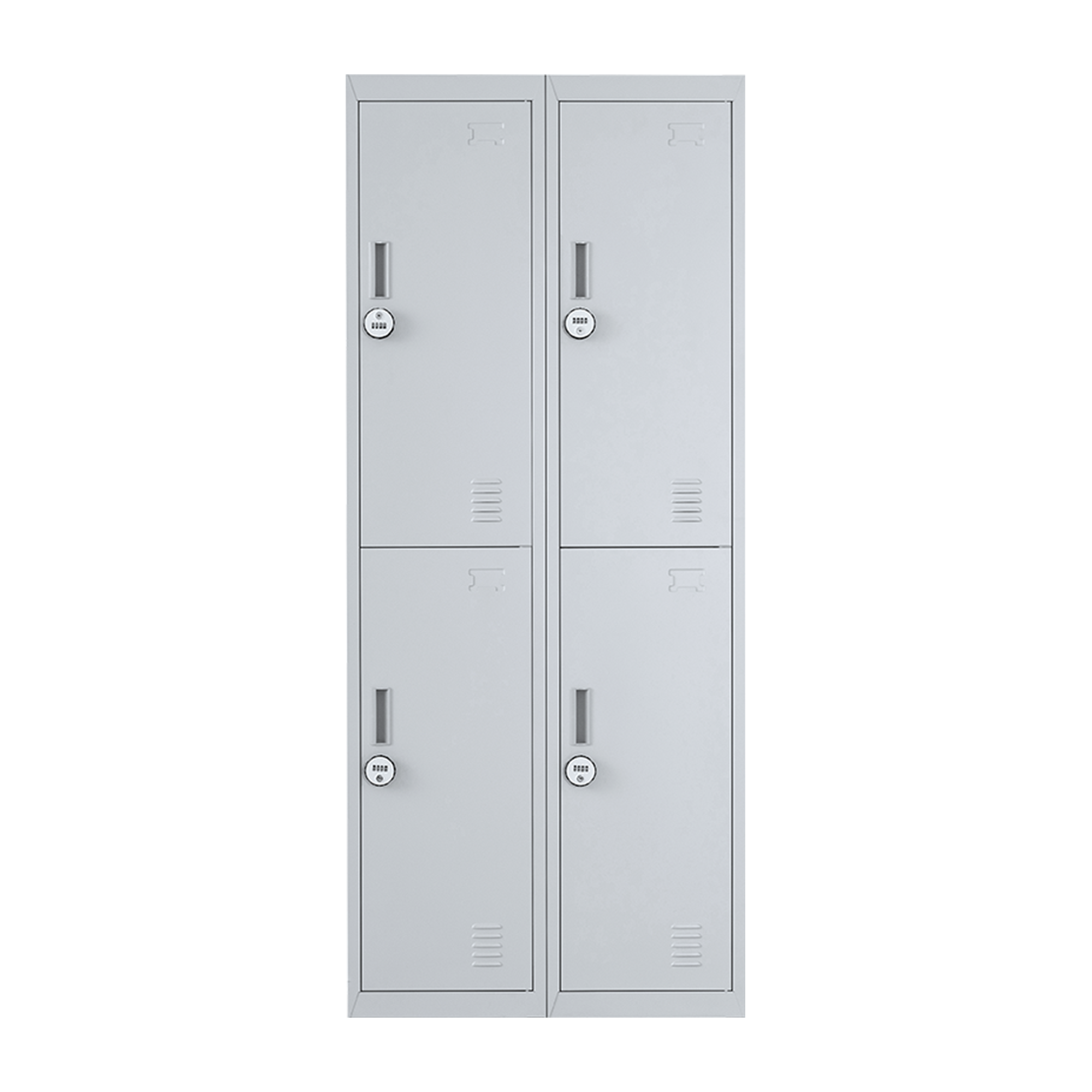 Four spacious lockers are arranged in a compact 2 x 2 grid. They're perfect to store a change of clothes, keep valuables, and store other a variety of personal belongings short-term or long-term.