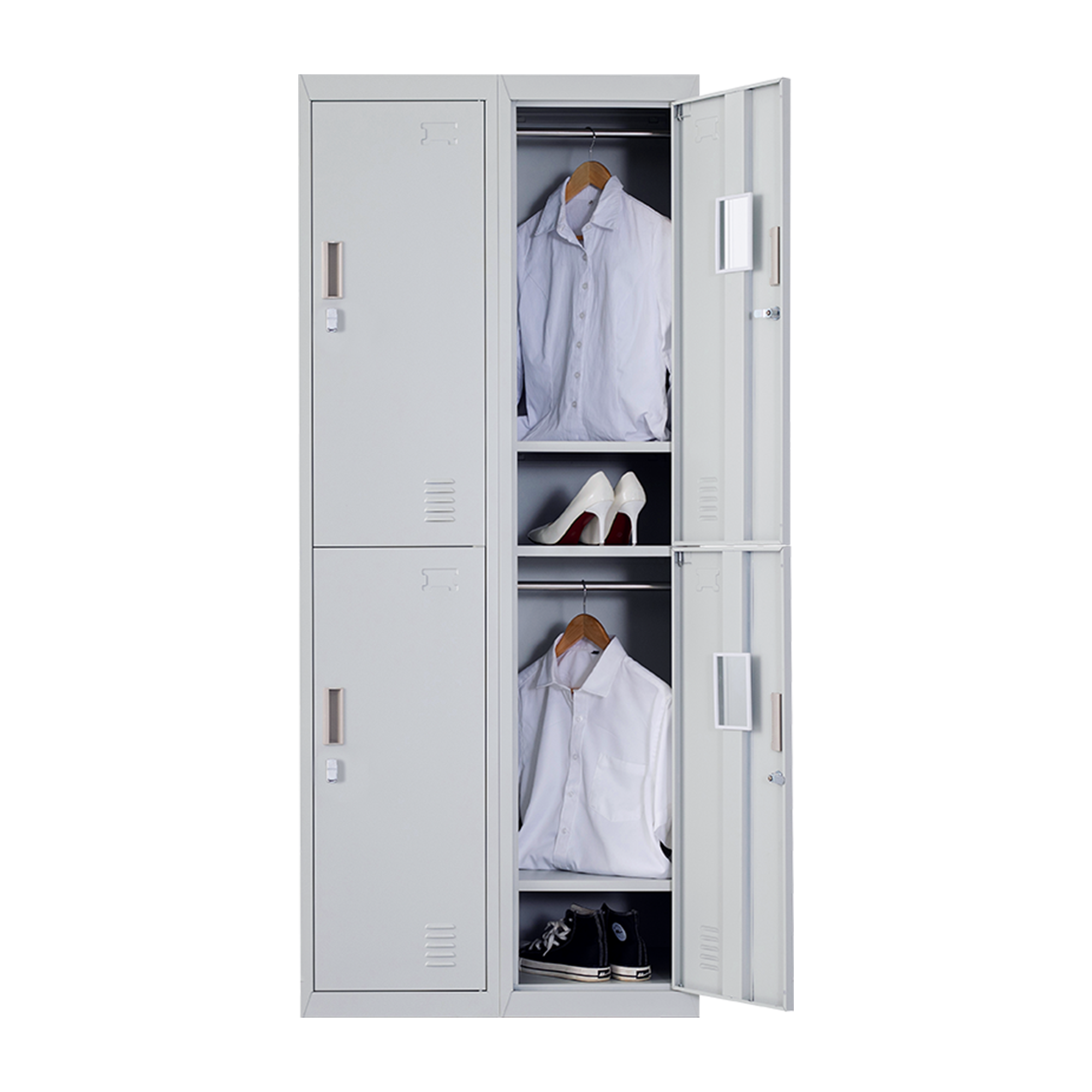 Four spacious lockers are arranged in a compact 2 x 2 grid. They're perfect to store a change of clothes, keep valuables, and store other a variety of personal belongings short-term or long-term.