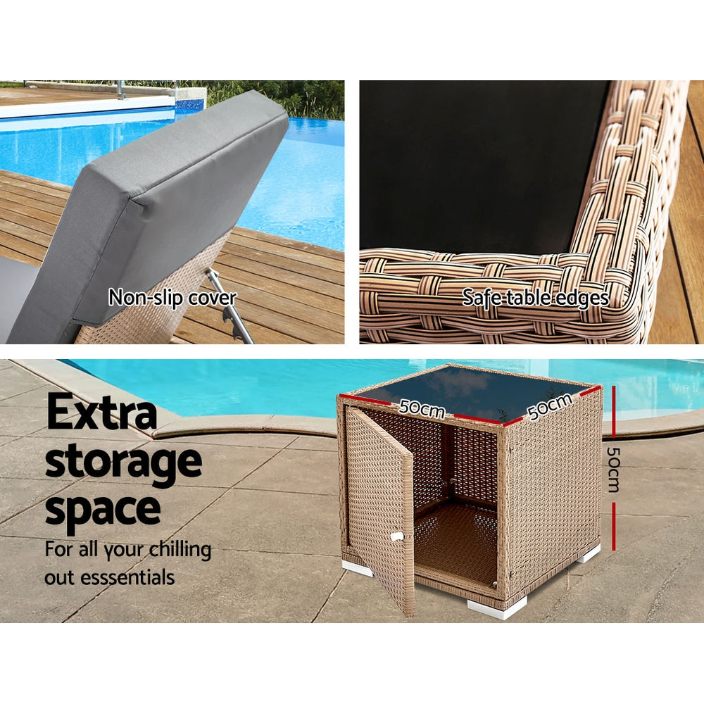 NNEDSZ 3 Piece Outdoor Wicker Lounge Set - Brown