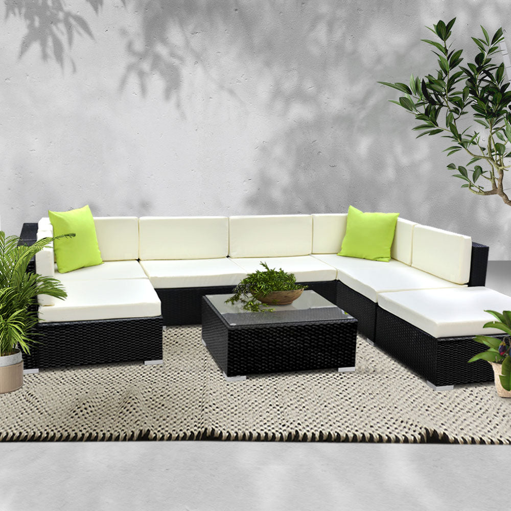 Leisure come easy with our Gardeon Outdoor Furniture Set. Our outdoor set promises luxurious and spacious comfort matched with long-term durability and robust use in any weather condition. With its UV-resistant PE wicker handiwork and heavy-duty aluminium frame, the stylish outdoor set is made to last. The table also comes with a 5mm thick tempered glass top for safety while a corner table (where applicable) add a handy convenience. Not least, the seat covers can be removed for washing.