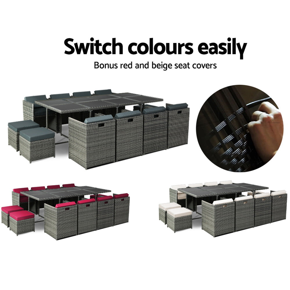 NNEDSZ Gardeon Outdoor Dining Set 13 Piece Wicker Table Chairs Setting Grey