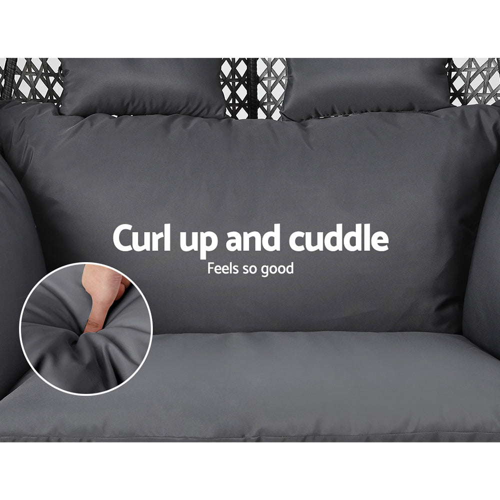 NNEDSZ Gardeon Outdoor Egg Swing Chair Hanging Pod Chair Wicker Cushion 2 Person Grey