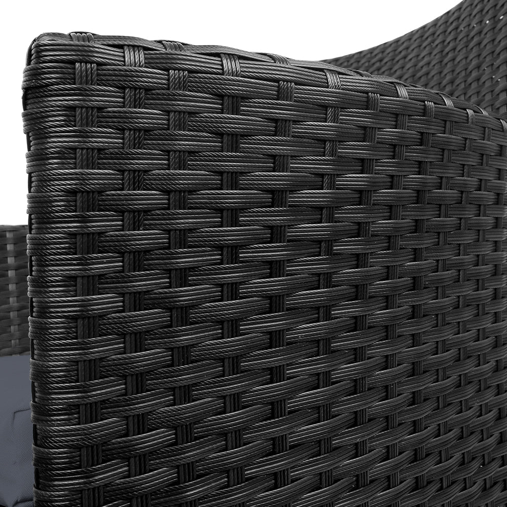 Enjoy the pleasant outdoors or have a nice chat with friends over a cuppa with our Gardeon Outdoor Bistro Set. With its chic and trendy profile, the set comes with a glass-top table and two wicker chairs. The elegant table is stunning in looks and equally as functional. The thick steel frame makes it durable and the 5mm thick tempered ripple glass does not only look stylish, it is easy to clean. Plus, there is a built-in hole for your parasol for you to relax outdoors for as long as you like during the hot summers without the fear of getting sunburnt. The chair is finished in meticulously weaved UV-resistant and weather-resistant PE wicker with a strong and sturdy steel frame construction. The exotic design, spacious seating and 5cm thick high-density foam cushions ensure comfort and style are always in place. Best of all, the removable and washable seat cushion cover makes cleaning up hassle-free. Together, the set is designed to please as well as stand up to the weather elements and the non-slip feet make the set suitable for use in even the most slippery of situations. With so much going for it, the bistro set certainly deserves its coveted space in your lovely backyard, deck or patio. Or even indoors for a unique presence.