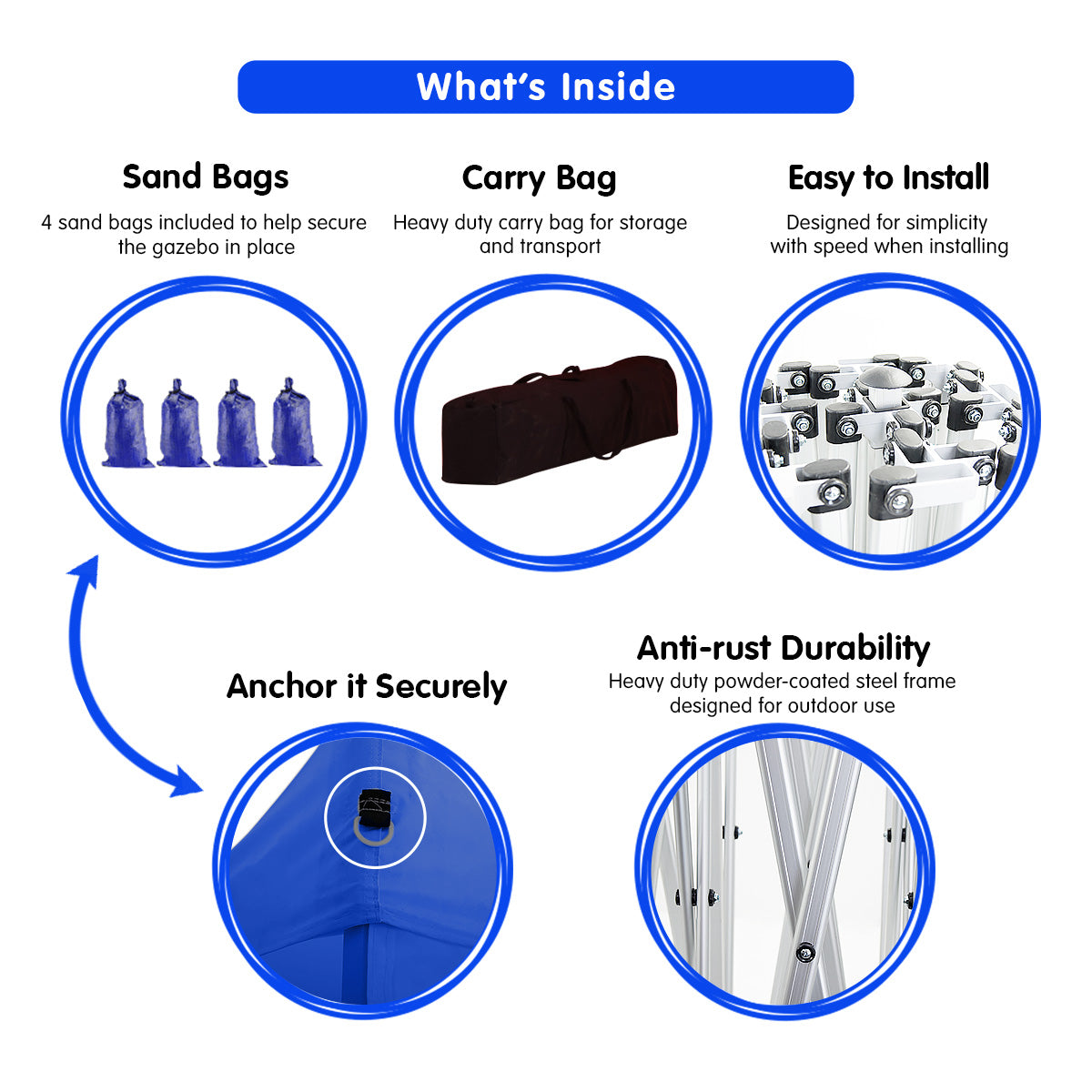 NNEDPE Gazebo Tent Marquee 3x3 PopUp Outdoor Wallaroo - Blue