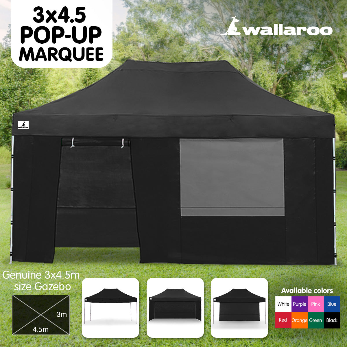 NNEDPE Gazebo Tent Marquee 3x4.5m PopUp Outdoor Wallaroo Black