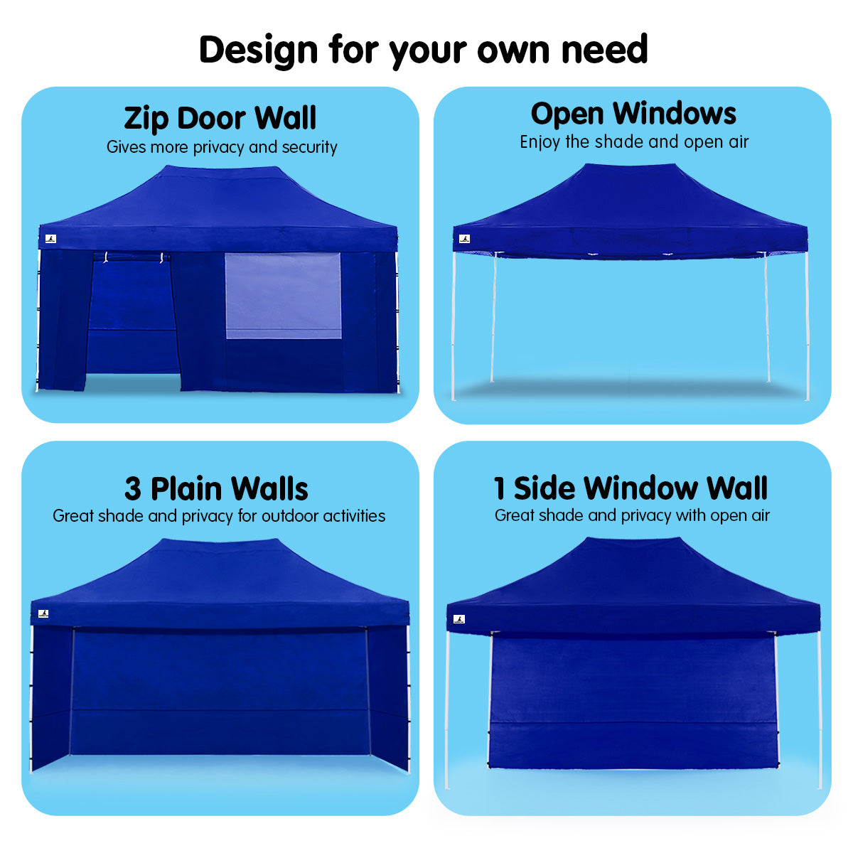 NNEDPE Gazebo Tent Marquee 3x4.5m PopUp Outdoor Wallaroo Blue