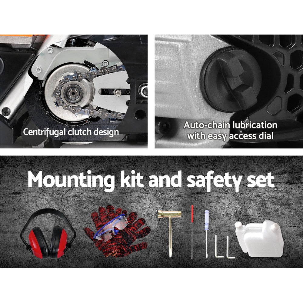 You?ll also get all the necessary accessories for a good clean cut such as a chainsaw sharpener, maintenance tool set, gloves and ear muffs. Every inch of the GIANTZ Chainsaw spells heavy duty high performance.