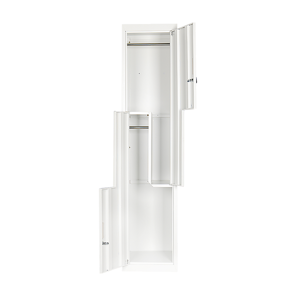 Our L-shaped, two-door vertical locker is a specially designed space-saving solution that provides the functionality for clothes and items storage, for 2 users. It's the ideal solution for personal use in the home or an apartment; or stack several units together for business needs like in schools, gyms, or work areas.