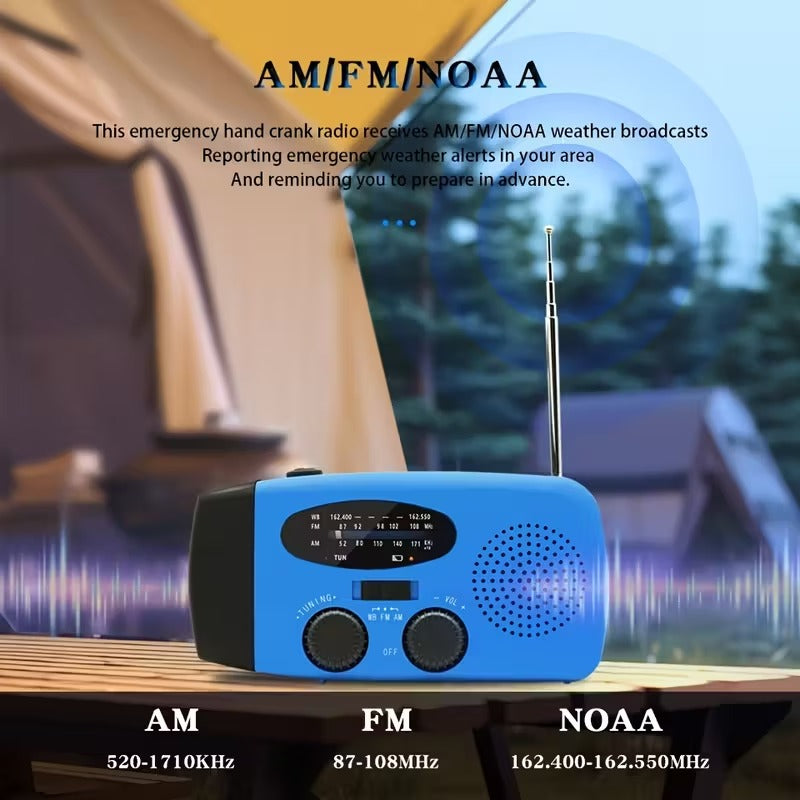 The NNETM Handheld Flashlight Radio is built to support you during emergencies, outdoor activities, or daily household needs. It combines radio functionality, a bright LED flashlight, and a rechargeable power bank in one compact device. With hand crank, solar, and USB charging, it ensures you stay powered even without electricity.