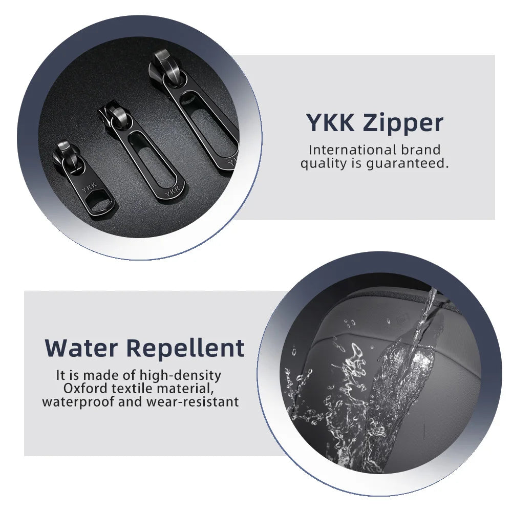 Water-resistant Oxford fabric: Crafted from durable, stylish Oxford material with YKK zippers for long-lasting use and protection against light rain.